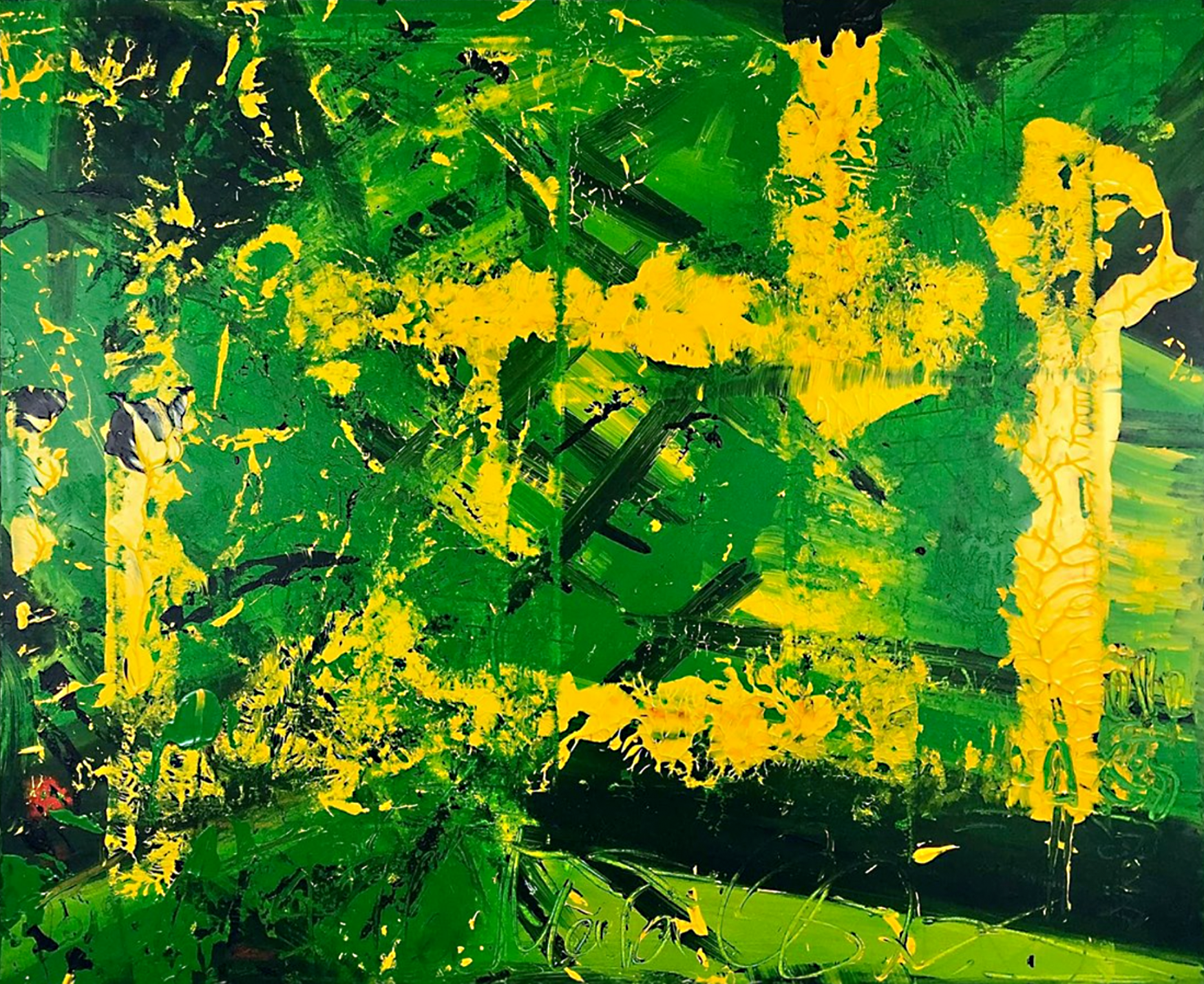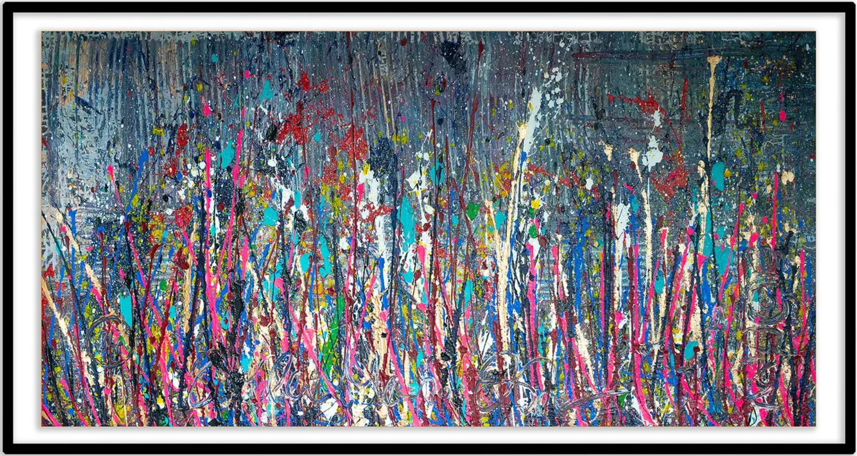 Jedes Bild, das Sie in dieser Ausstellung sehen, ist mehr als Farbe auf Leinwand & hat seinen eigenen Namen. Es ist ein Moment, ein Gefühl, eine Geschichte. Manche Werke entstanden mit einem Mal – kraftvoll, intuitiv, voller Energie. Andere entwickelten sich leise, fast zögerlich, Schicht für Schicht. Manche erzählen von Licht und Freiheit, andere von Tiefe und Wandlung. Wie könnte ich da eines hervorheben?