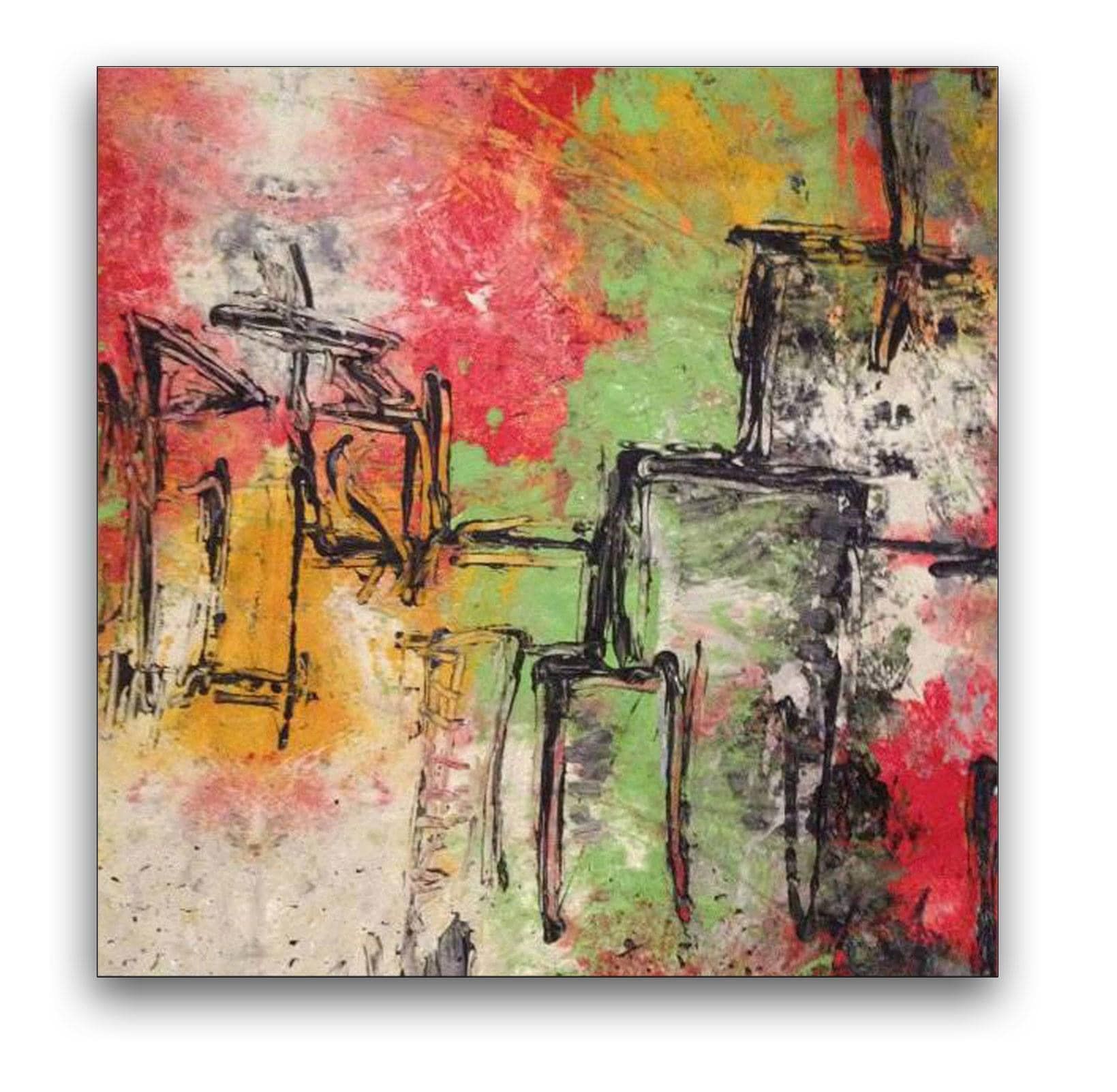 Die Stadt, immer pulsierend und voller Energie, hat mich tief inspiriert. Besonders die Gerhard-Richter-Ausstellung in der Neuen Nationalgalerie war ein neuer Einblick – seine abstrakten, farbintensiven Werke haben mich dazu angeregt, Berlin auf eine ähnliche Weise zu sehen und mit meinen Farben und Formen zu übersetzen.