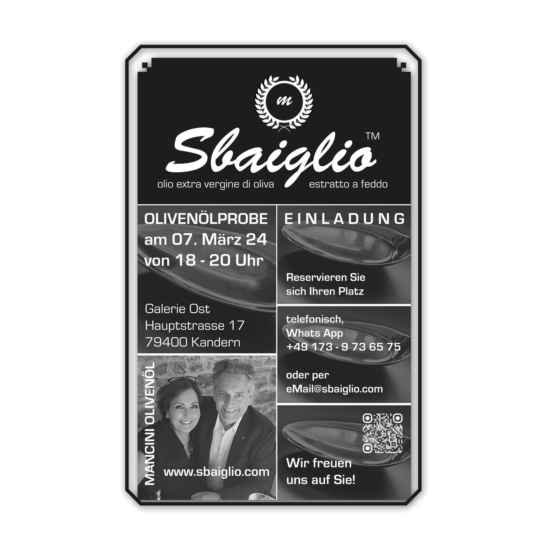 Am 07. März 2004 findet bei uns in der Galerie Ost die 1. SBAIGLIO - MANCINI OLIVENÖL PROBE 2024 für Sie statt.