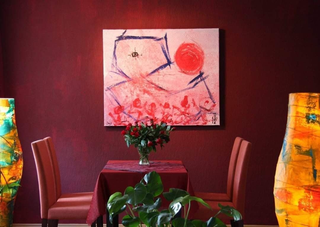 Kein Weg ist zu weit – für mich ist es selbstverständlich, dass ich meine Kunstwerke mit Leidenschaft & Hingabe liefere. Und wenn der Wunsch besteht, ein Gemälde an einer besonderen Stelle, vielleicht sogar an der Decke, zu platzieren, so erfülle ich auch diesen gerne.